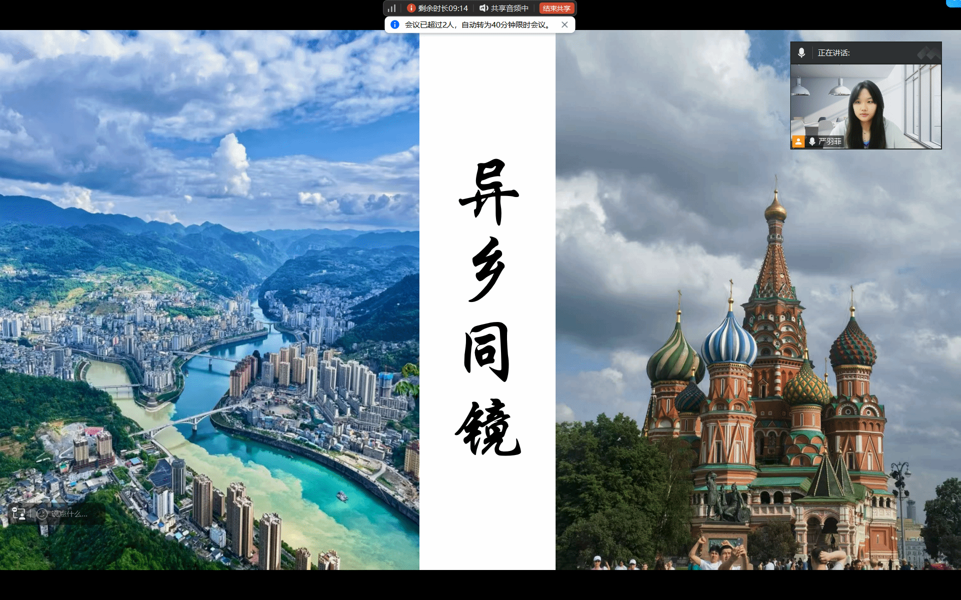9月23日晚,yl6809永利本科生党支部联合中共彭水苗族土家族自治县职业教育中心第二支部联合开展红色“1+1”支部共建第二次线上活动,讲座的主题为《异乡同“镜”:中俄乡村生活视觉发现之旅》。本科生党支部严羽菲、林一明通过对比中俄文化异同,为彭水职中的同学们带来一场生动的中俄文化交流活动。