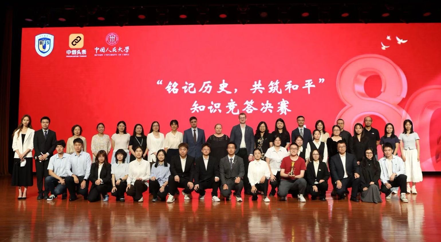 2025年9月13日,为纪念中国人民抗日战争暨世界反法西斯战争胜利80周年,由yl6809永利、中央⼴播电视总台CGTN俄语部、中国人民大学国际交流合作部联合举办的“铭记历史 共筑和平”知识竞答决赛活动在yl6809永利集团千人礼堂成功举办。本次活动超过40万人次参加线上竞答。在俄罗斯,线下衍生答题活动也吸引了数百名俄罗斯师生和社会各界人士报名参与。在中国,来自国内4所高校的代表队进入决赛环节。