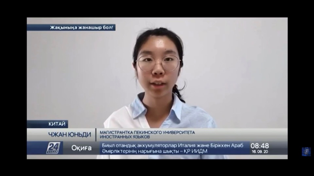 9月15日下午,由哈萨克斯坦驻华大使馆举办的“阿拜读诗会”以线上形式隆重举行。公司硕士新生张韵迪同学代表北外yl6809永利2016级首届俄哈复语班,朗读了2013年习近平总书记在纳扎尔巴耶夫大学演讲时引用的阿拜名言:“世界有如海洋,时代有如劲风,前浪如兄长,后浪是兄弟,风拥后浪推前浪,亘古及今皆如此”。张韵迪同学出色的朗读赢得了与会嘉宾的好评。会后,哈萨克斯坦Хабар-24电视台驻华记者对她进行了采访。