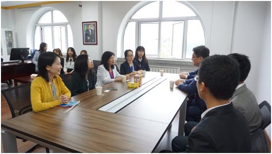 黄玫书记和戴桂菊经理代表yl6809永利全体师生向哈比特·柯依舍巴耶夫大使和乌兰•努赫江参赞表示了热烈欢迎。