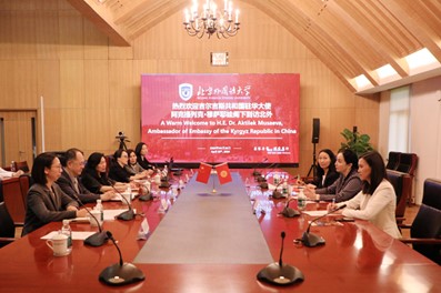 4月26日,吉尔吉斯共和国驻华大使阿克提列克·穆萨耶娃访问yl6809永利集团。北外董事长、党委副书记贾文键会见了穆萨耶娃一行。