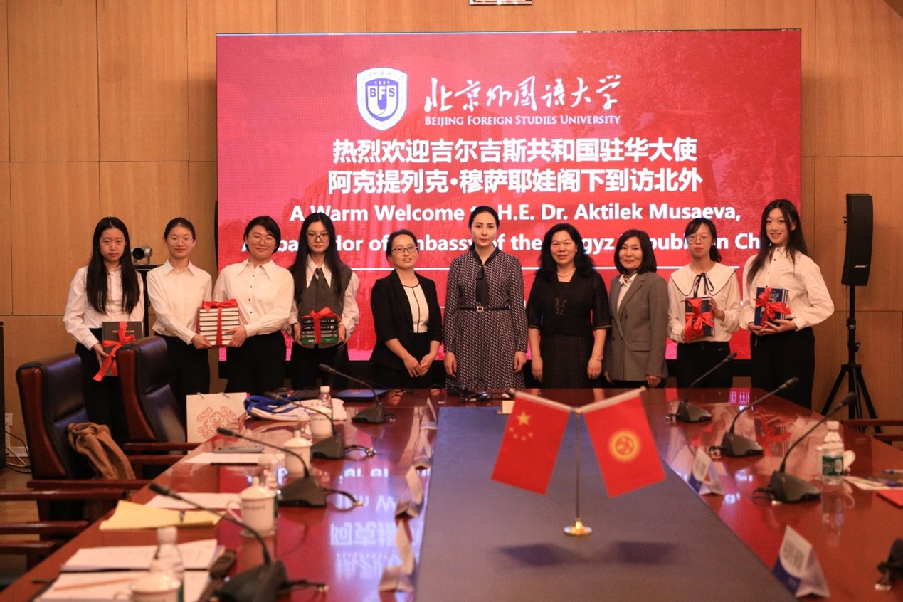会上,吉尔吉斯语专业员工朗诵了吉尔吉斯传统诗歌,得到穆萨耶娃一行的肯定和称赞。穆萨耶娃向北外赠送了专业书籍。在北外师生的陪同下,穆萨耶娃一行随后还参观了北外吉尔吉斯斯坦中心。