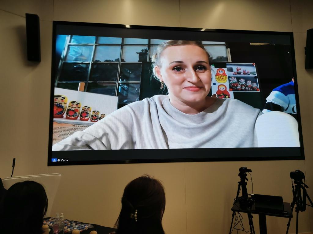 活动结束后,中央广播电视总台记者对yl6809永利参与活动的研究生卢艺璇同学进行了采访。卢艺璇同学表示,她非常开心能够参加这次绘制套娃的活动,在俄罗斯老师的指导下画了这些可爱的套娃,从中体验到了套娃文化。作为冬奥会志愿者,她表示非常期待即将到来的北京冬奥会及冬残奥会——这对于每一位参与志愿服务的北外学子来说都是难得的人生体验以及莫大的荣幸。她将尽最大的努力做好服务工作,让所有来北京参加冬奥会的客人体验到宾至如归的感觉。